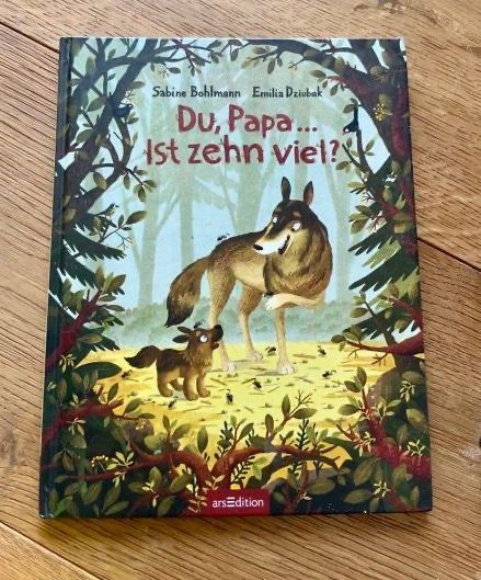 "Ist zehn viel?", fragt der kleine Wolf seinen Papa. "Kommt ganz drauf an", meint daraufhin Papa. Ein wunderbares Vorlesebuch ab ca. 3,5 Jahren über Verhältnismäßigkeiten von z.B. groß, klein, laut, leise, schlau usw. mit einem noch schöneren Ende. Dazu wirklich toll illustriert und einer der Favoriten unseres Ältesten. Gerade der jeweilige sich wiederholende Einstieg des Gesprächs zwischen Papa Wolf und Sohn war für den Großen toll zum Mitsprechen.