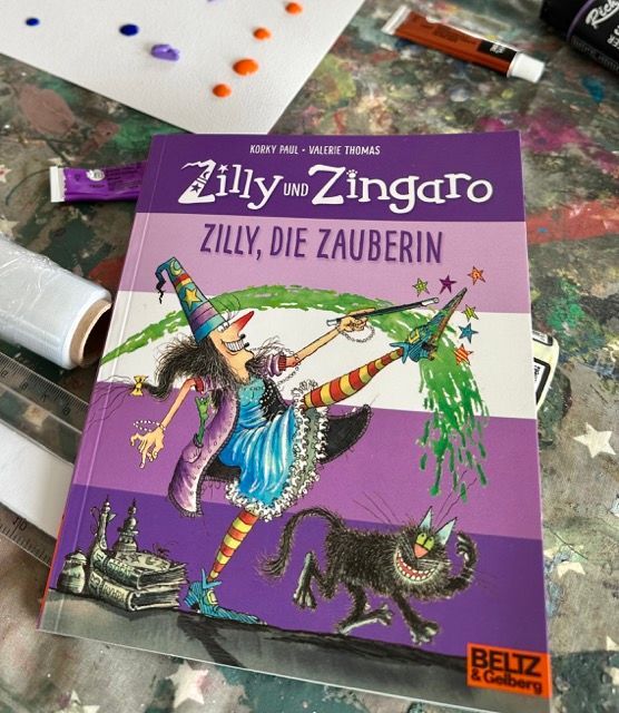 Vor allem Zauber- und Katzenfans werden ihre Freude haben. Aktuell ist bei uns gerade alles hoch im Kurs, was bunt ist oder mit Farben zu tun hat, da passt das Buch perfekt. Zilly, die Zauberin, hat ein Problem mit ihrem schwarzen Kater Zingaro, über den sie in ihrem schwarzen Haus ständig stolpert. Kurzerhand fängt sie an zaubern…