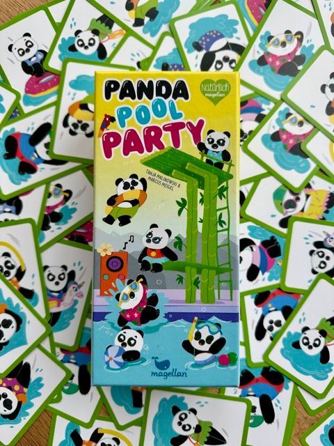 Panda Pool Party ist ein lustiges Kinderspiel ab 4 Jahren, das Bewegung, Geschick und Konzentration perfekt verbindet. Auf dem Sprungturm liegt ein Stapel Pandakarten, und der Würfel entscheidet, ob gepustet, geschoben, geschnipst oder gehoben wird. Doch Vorsicht: Es dürfen höchstens fünf Karten herunterfallen – sonst freuen sich die Mitspieler.