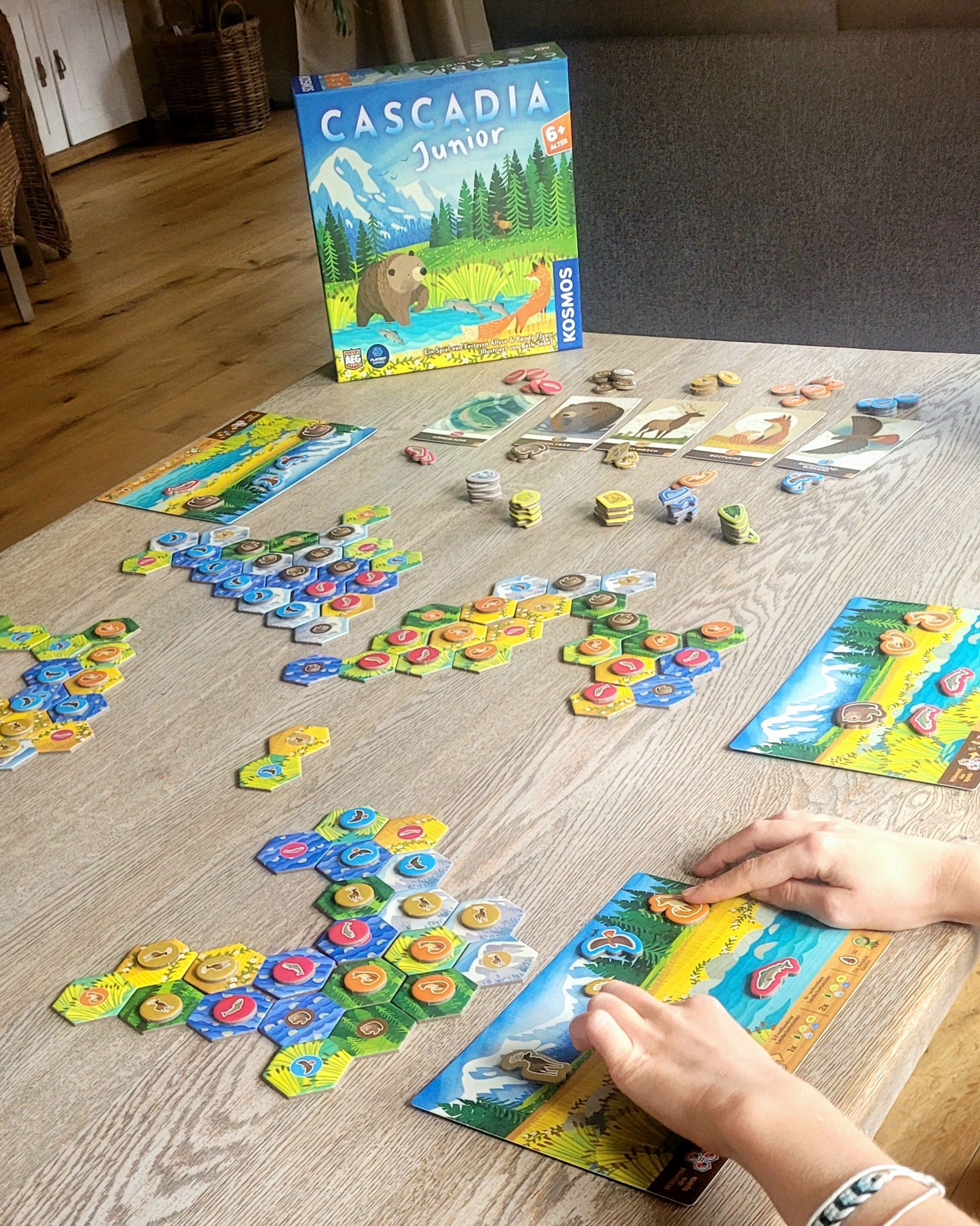 Einfache Regeln sorgen für einen schnellen Einstieg und die kurze Spieldauer von ca. 20 Minuten macht es ideal für Familienrunden. Dabei bleibt genug Tiefe, damit auch ältere Kinder und Erwachsene Freude daran haben. Kein Wunder, dass Cascadia Junior 2025 für das Kinderspiel des Jahres nominiert wurde!