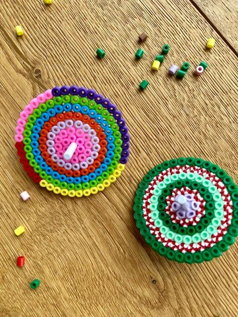 Habt ihr auch so viele Bügelperlen-Bilder zuhause? Mit den Kreisel habt ihr auch nach dem Bügeln noch etwas vom Kunstwerk. Und als kleines Mitbringsel oder auch zum Nikolaus/ Adventskalender bieten sich die Kreisel super an.