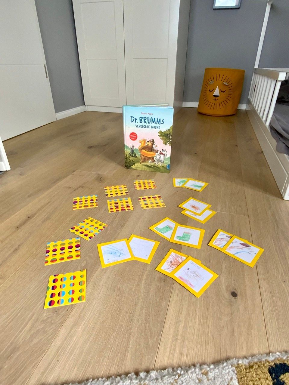 Für dieses #diy Memory schneidet ihr 20 gleich große Quadrate aus Tonkarton aus (hier 8x8cm) und 20 etwas kleiner Quadrate aus Papier (hier 7x7cm). Hierzu hat mein Großer jeweils eine Seite im Buch aufgeschlagen und sich eine Sache ausgesucht, die er dann auf eine Karte gemalt hat. Ich habe jeweils die dazugehörige Karte bemalt. So entsteht ein schönes individuelles Memory zum Buch - übrigens auch eine tolle Geschenkidee zu einem Buch.