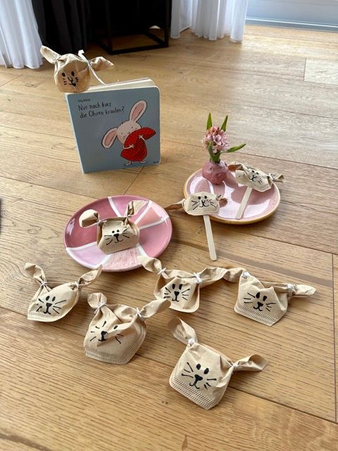 Aus Kaffeefiltern und ein wenig Band sind schnell diese kleinen Häschen gezaubert. Vielseitig einsetzbar als Handpuppen zum Spielen, Lesezeichen, Mitbringsel gefüllt mit Kleinigkeiten oder einfach als Tischdeko.