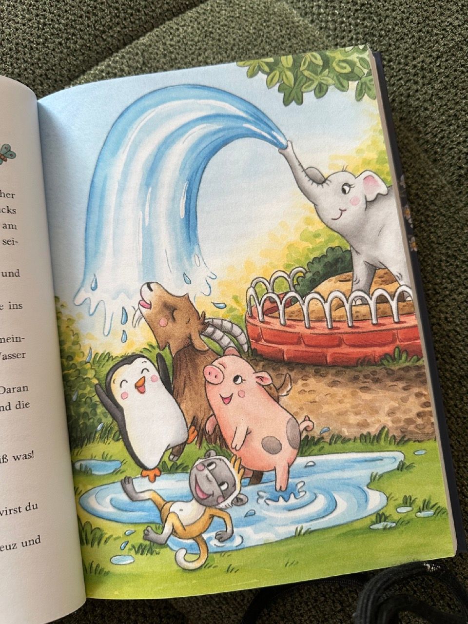 Die Charaktere haben unsere Kids sofort ins Herz geschlossen: Pinguin Knut, Minischwein Marta, Äffchen Hicks und Steinbock Rocky. Gemeinsam erleben die vier Freunde eine Menge Abenteuer – nicht zu ruhig, aber auch nie zu aufregend (also genau die richtige Mischung für eine entspannte Gute-Nacht-Geschichte 😉). Besonders spannend fand ich, dass sich alle meine Kids unabhängig voneinander dieselben Lieblingsgeschichten ausgesucht haben! Ich lese öfter mit jedem einzeln und jeder darf sich dann immer zwei Geschichten aussuchen – und am beliebtesten war eindeutig "Wer gewinnt?". Hier tritt die Knuddelbande in einer Schneeballschlacht gegen die freche Raufbande an. Aber auch die anderen Geschichten haben wir mittlerweile alle durch. Ob bei Bauarbeiten in Rockys Gehege, auf Karussellfahrten im Zoo, nächtlichen Ausflügen oder im Labyrinth auf dem Abenteuerspielplatz, in jeder Geschichte begleitet man die 4 Freunde auf ein neues Abenteuer, das jedes Mal mit einem "Der Tag hat so viel Spass gemacht! Jetzt sagen wir uns Gute-Nacht! endet und so die eigene Insbettgehzeit einläutet.