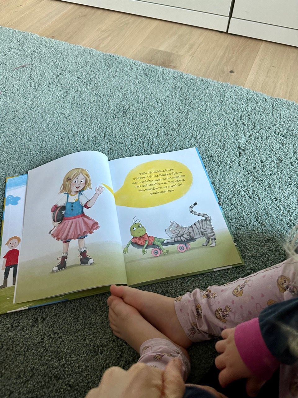 Mina ist fünf Jahre alt, ein Vorschulkind, und gerade mit ihrer Familie umgezogen. Ihr Kuscheltier Hugo, ihr Skateboard und ihr rosa Rock sind mitgekommen – aber ihre alten Freunde nicht. In ihrem neuen Kindergarten kennt sie noch niemanden, doch Mina wäre nicht Mina, wenn sie sich dafür nicht einen Plan zurechtlegen würde: Jeden Tag in dieser Woche verabredet sie sich mit einem anderen Kind aus ihrer neuen Kita, um herauszufinden, mit wem sie am besten befreundet sein möchte.
