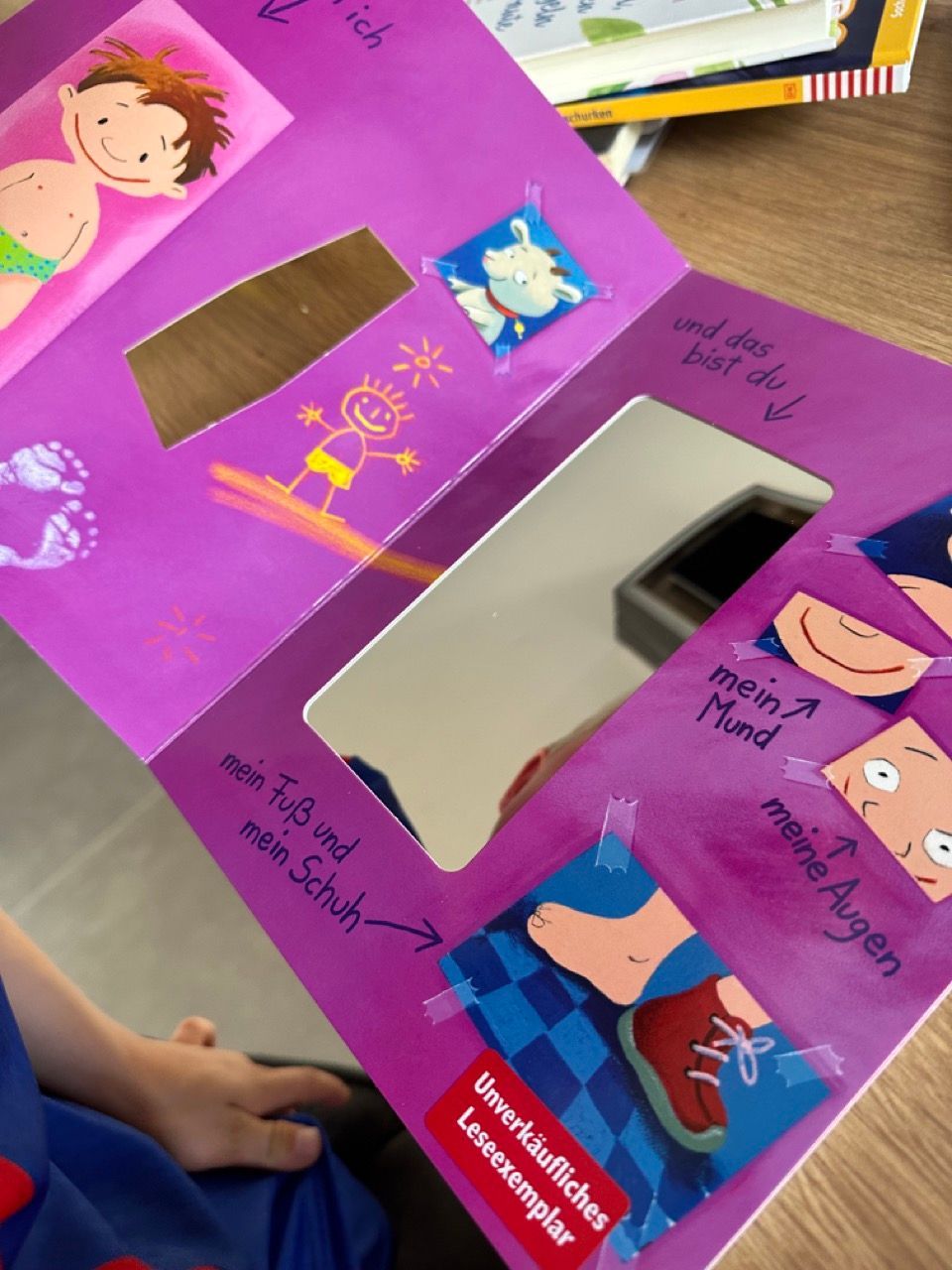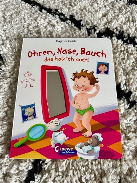 Die Reimform ist gerade bei den ersten Kinderbüchern immer toll und lädt zum Mitsprechen ein. Das schafft eine vertraute Atmosphäre, die Kinder motiviert, sich mit dem eigenen Körper auseinanderzusetzen. Und dank der eingebauten Spiegelfolie können sich die Kleinen sogar selbst im Buch betrachten – ein großartiger Einstieg, um die Aufmerksamkeit zu gewinnen und Neugier zu wecken - sogar der Große fand dieses Highlight irgendwie auch noch spannend ;-).