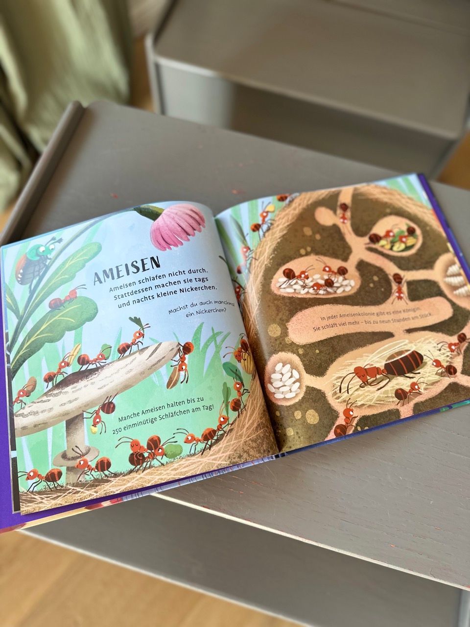 Hast du dir schon einmal Gedanken darüber gemacht, wann und wie Tiere eigentlich schlafen? Wo sie sich hinlegen – oder vielleicht gar nicht hinlegen? Dieses wunderschöne Bilderbuch nimmt euch mit auf eine Reise durch die Welt der schlafenden Tiere. Und das Beste: Es lädt eure Kinder aktiv zum Mitmachen ein! Auf jeder Seite gibt es kleine Fragen, die zum Staunen und Nachdenken anregen.