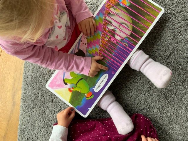 Im Alltag kommt Musik total gut an und bei Liedern, wie „Alle Leut“ singen sie schon einzelne Worte mit und machen die passenden Bewegungen. Das Lied wandeln wir inzwischen auch als abendliches Ritual ab und singen. „Alle Leut geh´n jetzt ins Bett“.