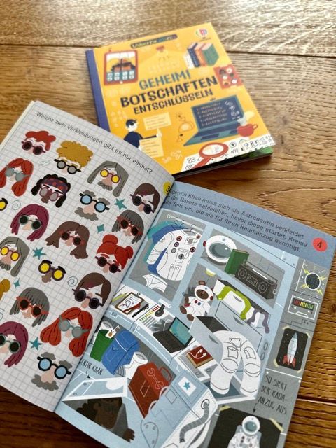 Die 25 Rätsel aus GEHEIM sind, wie der Titel BOTSCHAFTEN ENTSCHLÜSSELN vermuten lässt, buchstabenorientiert und erfordern ein bisschen Erfahrung im ersten Lesen und Schreiben. Hier geht es vor allem darum, Nachrichten zu entschlüsseln und geheime Codierungen zu knacken.
