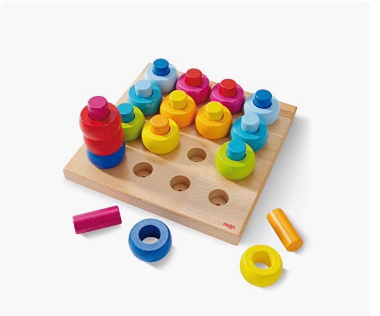 Auch Colorino ist ein Kindersteckspiel, das sich super zum Farbenlernen eignet und gleichzeitig total die Feinmotorik fördert. Das Spiel wurde und von vielen empfohlen und unsere Kinder haben es auch bei Freunden schon gespielt.