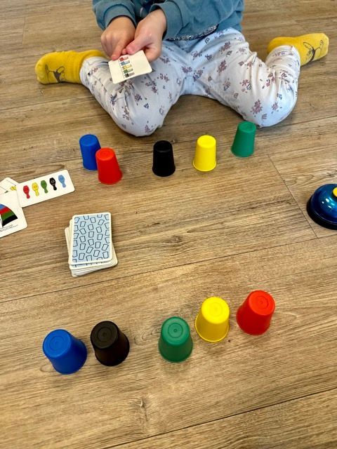 Eigentlich ein Kinderspiel auf Schnelligkeit ab 6 Jahren gedacht, kann man mit Speed Cups auch wunderbar umfunktionieren, in dem man die Geschwindigkeit rausnimmt. Die kleinen Mäuse haben viel Spass daran, die Becher anhand der Vorlage ohne Zeitvorgabe zu stapeln und lernen ganz spielerisch die Farben. Und das beste, das Spiel könnt ihr dadurch besonders lange nutzen.