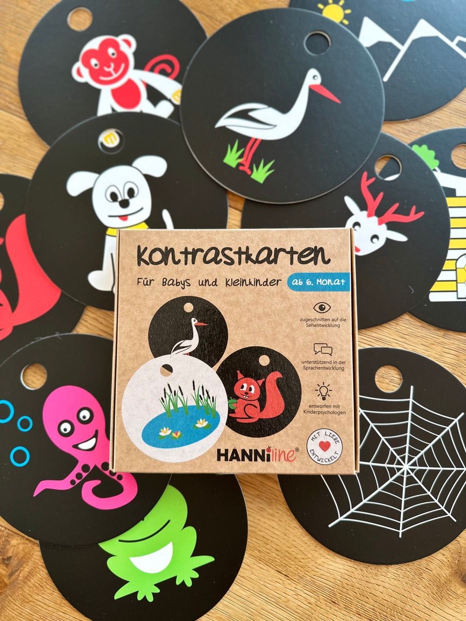 Das farbliche Sehen entwickelt sich erst im ersten Lebensjahr der Kleinen. Mit den Kontrastkarten könnt ihr erste visuelle Anreize schaffen und die Aufmerksamkeit durch die kräftigen Farben und starken Kontraste wecken.