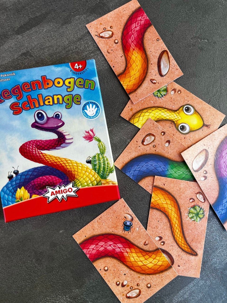 Das Spiel Regenbogenschlange war ein Zufallsfund und wird von allen Kindern (sogar zusammen) total gerne gespielt. Ich hatte es damals als Urlaubsspiel zum Mitnehmen besorgt und auch dafür ist es ideal. Ich würde sagen man kann es sogar schon mit ca. 2,5 Jahren als erstes Spiel empfehlen, da es Farben lernen und kombiniertes Anlegen verknüpft.