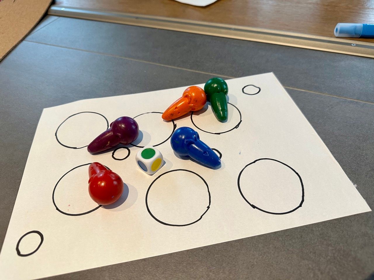 Eines unserer ersten Spiele, bei dem man einfach und nebenbei die Farben lernt. Das ganz einfache Spielprinzip ist auch super, um überhaupt erste Spielregeln zu lernen und in die Welt der Brettspiele einzusteigen.