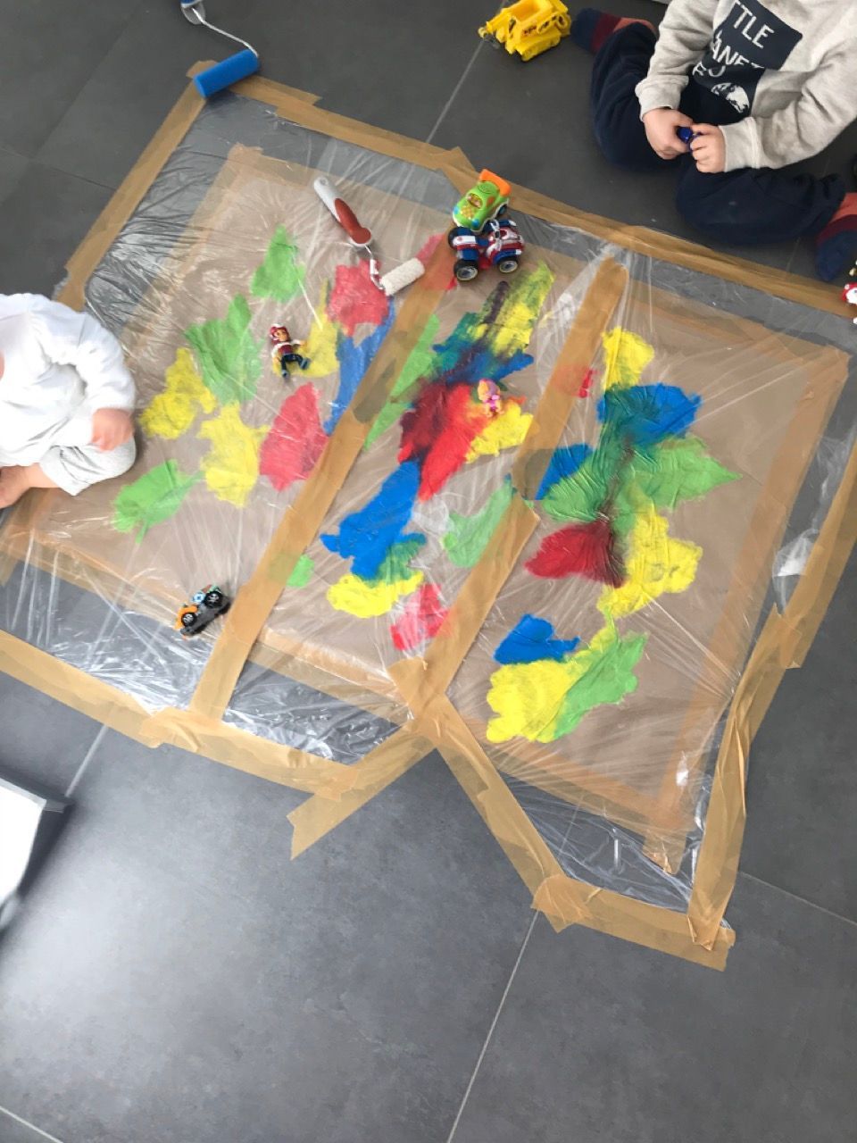 Was bei uns auch wochenlang total die beliebte Beschäftigung war, bei der Farben und Sticker kleben kombiniert ist - Punkte kleben.