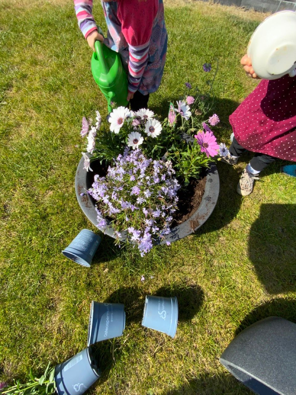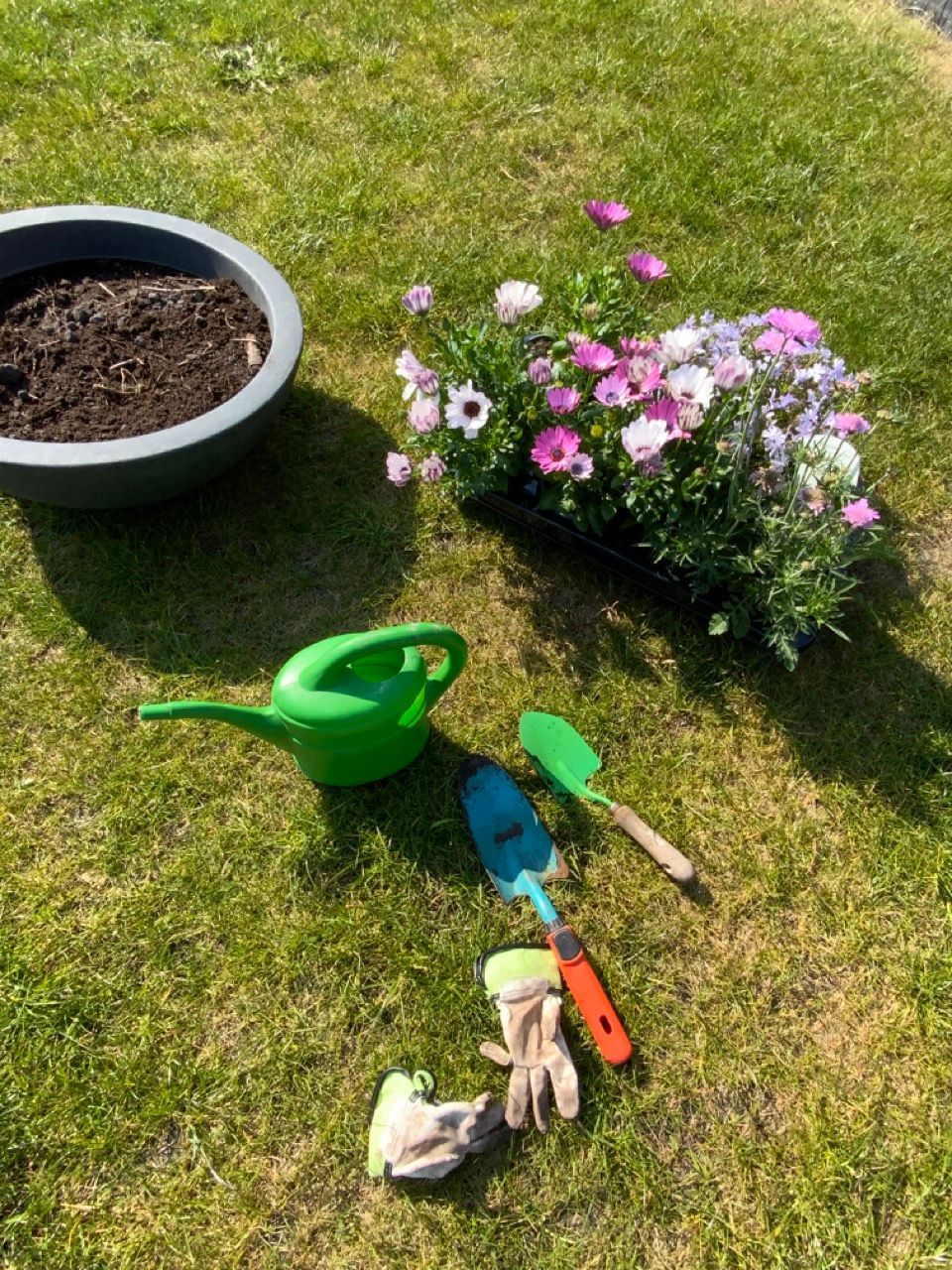 Futter für Einhörner pflanzen oder eine erste kleine Aufgabe. Bei uns durften sich die Zwillingsmädchen beim letzen Besuch im Gartencenter jeder eine eigene kleine Blume aussuchen, die wir dann zusammen eingepflanzt haben. Der kleine Blumenkübel steht neben ihrer Matschküche und dem Naschbeet. Das ganze geht natürlich auch mit einer Zimmer- oder Balkonpflanze. Zum Einpflanzen hatte ich alles vorbereitet und bereitgelegt.