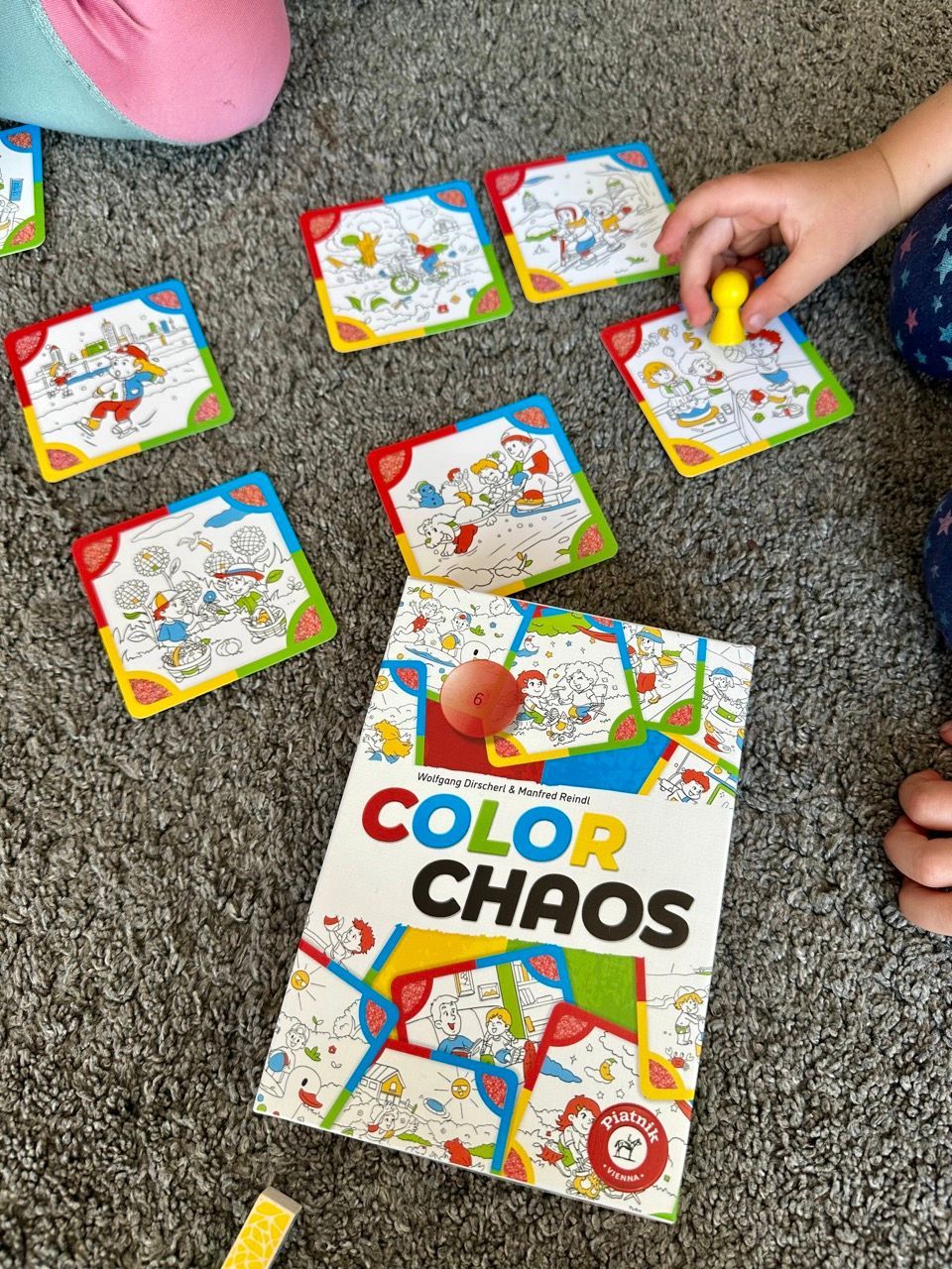 Ein Spiel, das bei uns super in die Kategorie Farben & Formen passt – aber eigentlich ist es viel mehr als das: COLOR Chaos ist ein schnelles Reaktionsspiel, das die Kids auch konzentrationsmäßig fordert. Kurz, knackig, und genau richtig, wenn man mal eine Runde zwischendurch spielen will.