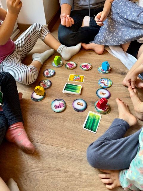 Das Spiel besticht durch seine Mischung aus Ziehen, Setzen und Karten nehmen, wobei das unter gewissen Voraussetzungen erlaubte Stibitzen von Karten, eine unerwartete Wendung und Spannung ins Spiel bringt – besonders für die kleinen Spieler eine aufregende Möglichkeit, ihre ersten eigenen Strategien auszuprobieren und sich im vorausschauenden Planen zu üben. Auf unserem letzten Mädelswochenende mit den Kindern haben wir es auch gespielt und können alterstechnisch aus unseren Erfahrungen sagen, dass es für Jüngere noch schwierig ist, aber auch mit 6 Jahren noch viel Spass macht.