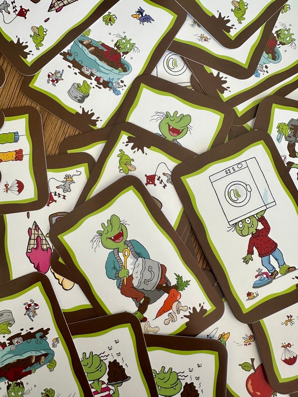 - Positive Karten wie Stinkesocken oder Müllhaufen: Hier muss man „Leckerschmecker!“ rufen und sich dabei den Bauch reiben.