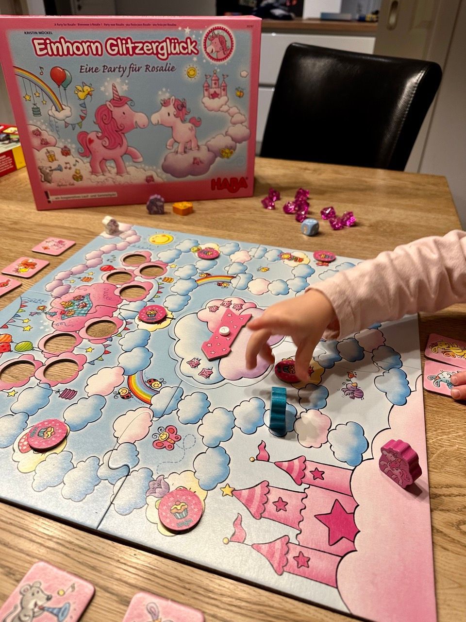 Eine Party für Rosalie ist für uns der absolute Favorit aus der Einhorn Glitzerglück-Reihe – wobei wir tatsächlich alle Spiele der Reihe gerne spielen. Empfohlen von einer lieben Freundin, hat es sich schnell als Highlight für unsere kleinen Einhorn- und Glitzerfans etabliert. Sogar der Große spielt es mit sechs Jahren noch hin und wieder gerne mit.