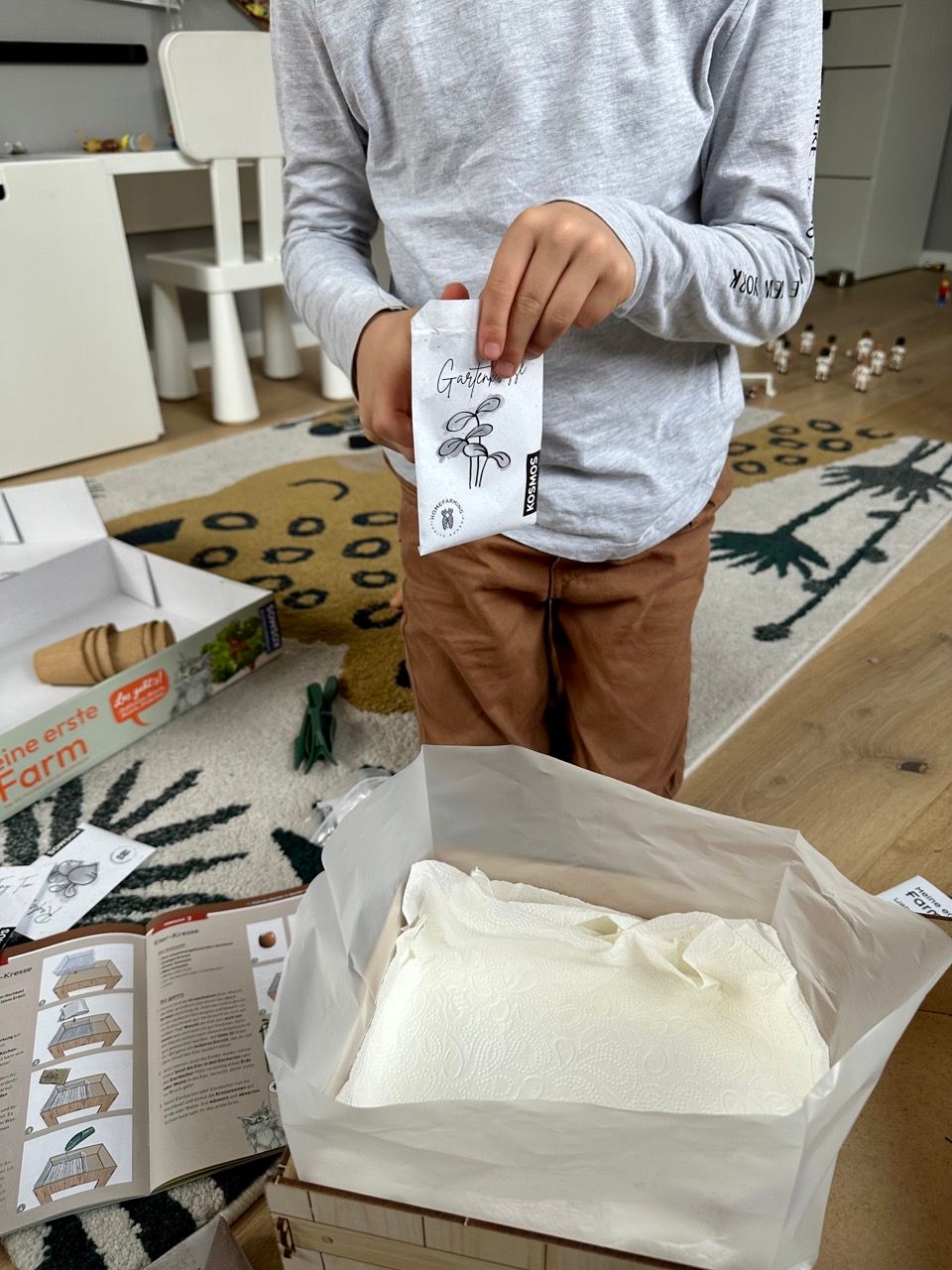 Mit dabei sind übrigens auch Erde, Samen, Gießkanne, Schaufel, sodass man ohne große Vorbereitung direkt starten kann und durch die Versuche begleitet wird.