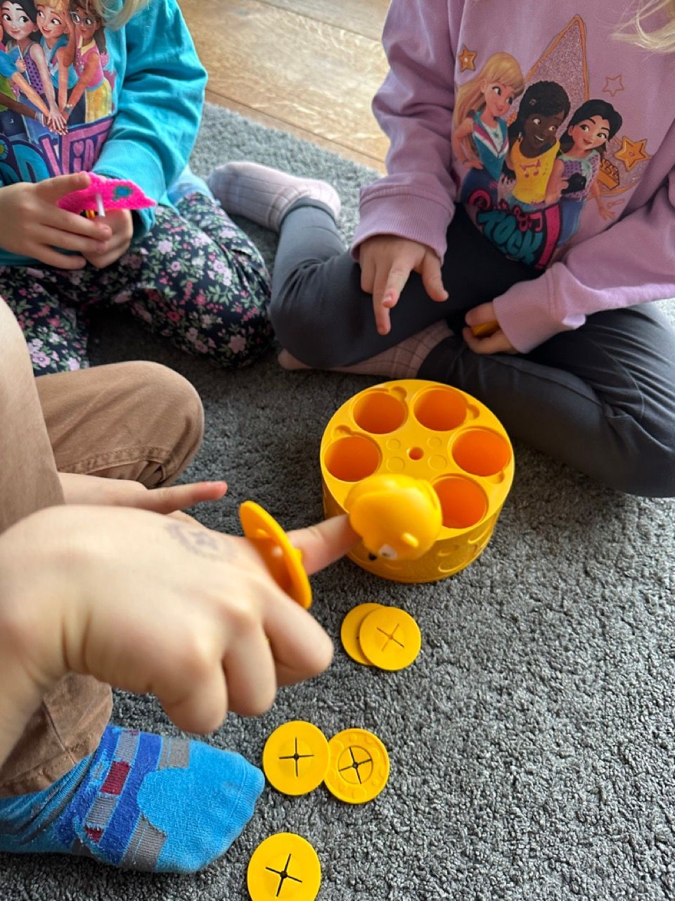 Vor jeder Runde wird das Käseroulette gedreht – und das macht unseren Kids riesigen Spaß, denn es erinnert an ein Karussell. Das Drehen steigert auf jeden Fall auch nochmal die Spannung. Sobald sich die ersten Finger mutig in den Käse wagen, startet ein aufregendes und turbulentes Spiel. Und ja, am Anfang kostet es für den ein oder anderen ein bisschen Überwindung ;-).