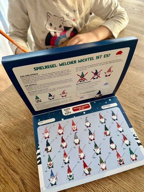 Der Klassiker im Block ist „Welcher Wichtel ist es“. Man stellt sich gegenseitig Fragen, die mit Ja oder Nein beantwortet werden, bis der richtige Wichtel erraten ist. Das funktioniert auch schon super mit jüngeren Kindern und macht einfach Spaß.